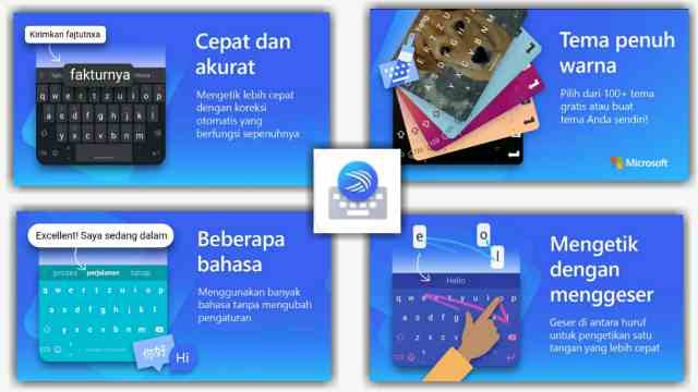Aplikasi ini sangat simpel dan praktis tapi memiliki banyak tema yang disediakan sehingga sangat cocok bagi Anda yang suka dengan tampilan Keyboard yang beda. Bagi Anda yang hobi menulis, aplikasi Swiftkey keyboard mungkin bisa menjadi pilihan, karena telah dilengkapi dengan fitur koreksi otomatis, titik cepat (spasi 2 kali akan memunculkan titik), kontrol kursor, huruf besar otomatis, dan masih banyak lagi.