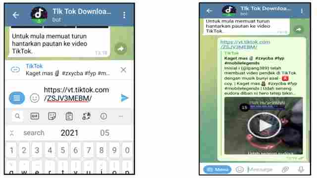 Jika sudah, buka lagi bot Telegram tersebut, kemudian paste/tempelkan link tersebut lalu kirim. Tunggu beberapa saat, maka Bot akan mengirmkan video TikTok tersebut tanpa watermark.