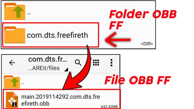 Pastikan file OBB FF tersebut bersamaan dengan folder bernama com.dts.freefireth. Jadi, yang kamu pindahkan adalah folder com.dts.freefireth yang didalamnya ada file OBB FF kedalam folder obb Android tadi. Jika tidak, Free Fire tidak akan bisa dimainkan karena tidak terbaca OBB FF.