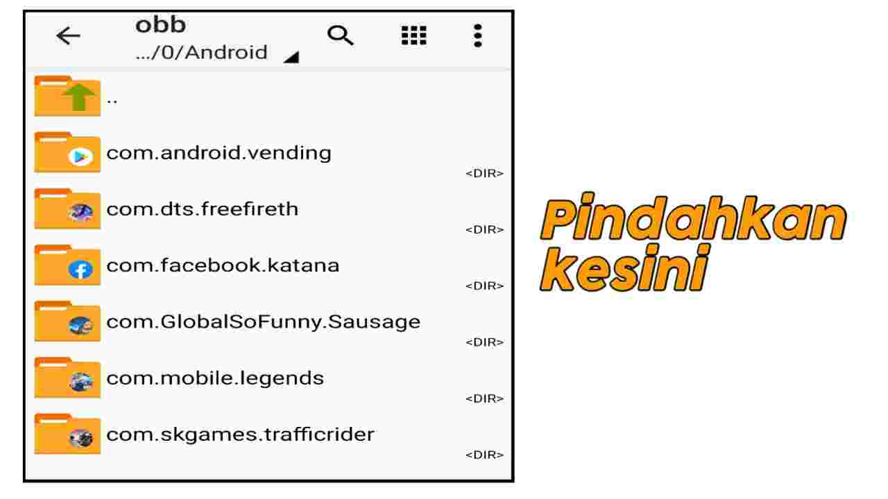 - Ingat, didalam folder obb. Jika belum ada folder obb, silahkan buat folder baru bernama obb.