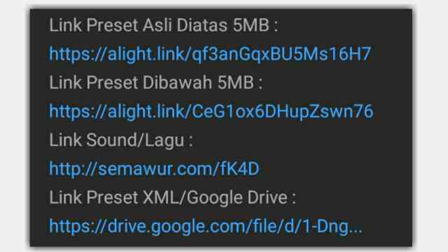 - Silahkan cari dan klik Link preset. Anda bisa mencarinya di YouTube atau orang yang membagikan link preset.