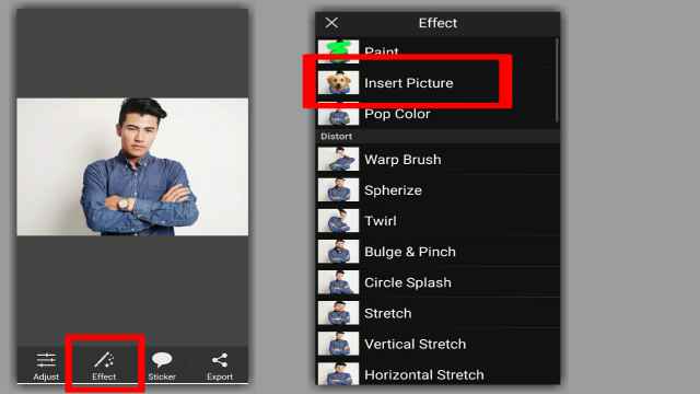 - Kemudian pilih Effect >> Insert a Picture lalu masukkan foto yang tadi lagi.