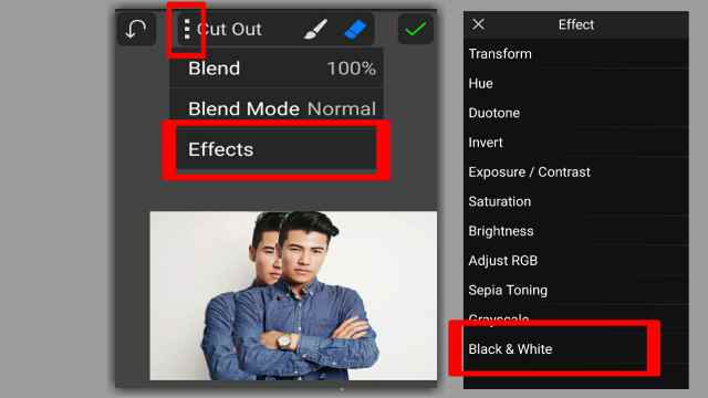 Nah, itulah cara membuat bayangan pada foto di Picsay Pro. Cara diatas hanyalah sebagai acuan tentang cara membuat bayangannya. Selebihnya tergantung Anda dan editan foto Anda. Jadi, pada intinya gunakan foto tersebut lagi sebagai bayangan hapus background secukupnya lalu dengan menggunakan fitur efek Black and White dan gunakan pula fitur Blend untuk mengatur warna bayangan tersebut.