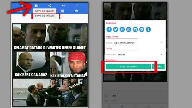 - Nah, sampai disini meme gambar sudah jadi. Selanjutnya tinggal Simpan.