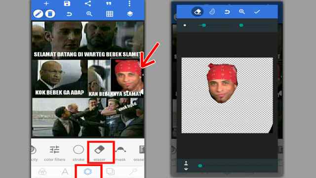 - Jika Anda ingin menghapus Background dari gambar tersebut, maka pilih fitur Eraser lalu hapus.