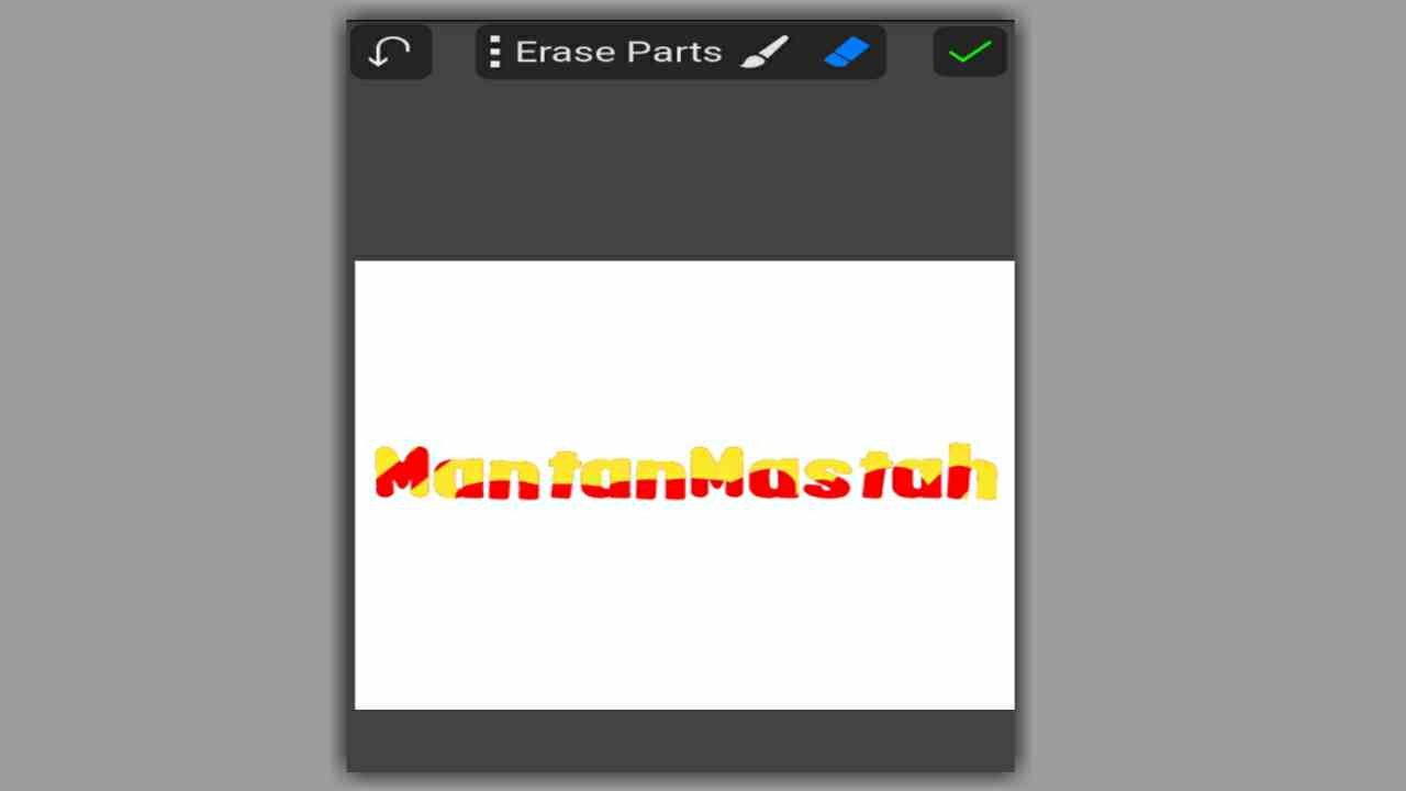 Nah, tersisa satu teks lagi. Saatnya teks tersebut diubah warnanya. Kemudian lakukan penghapusan teks (Erase Parts) pada satu teks tersebut. Bagian teks yang dihapus akan digantikan oleh teks yang sudah menyatu dengan background tadi.