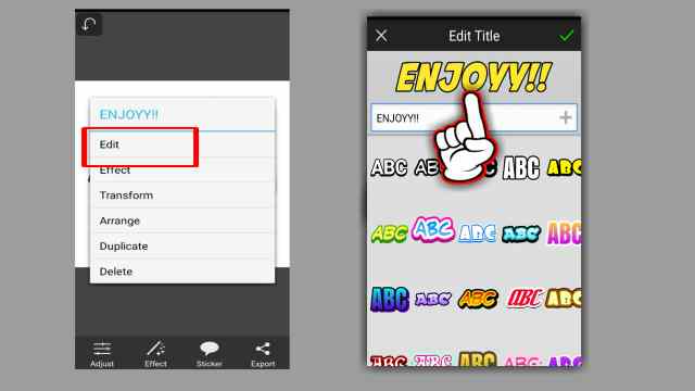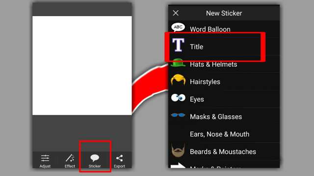 - Pada menu pengeditan, tap Sticker lalu pilih Title.