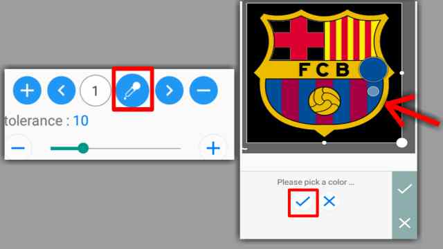 - Pada awal diaktifkan, fitur ini akan langsung menghapus bagian warna putih pada Gambar. Untuk mengubah warna yang dihapus, tap ikon mirip pensil lalu geser bulatan kecil pada Layer kebagian warna yang akan dihilangkan. Jika sudah, klik ✓.
