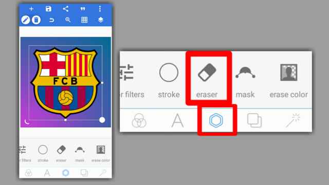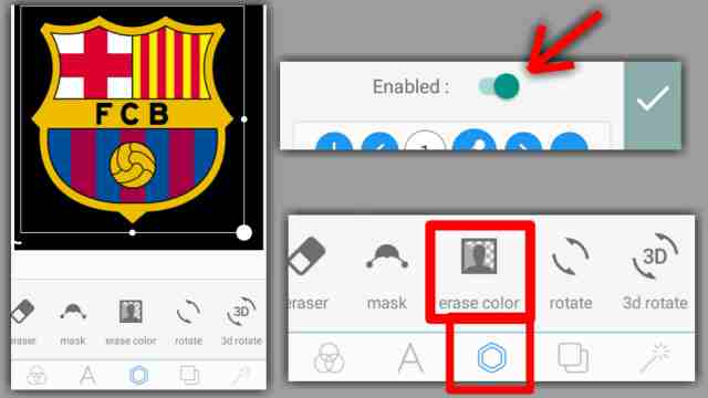 Di PixelLab, terdapat 2 Tool atau fitur yang memungkinkan Kita dalam melakukan penghapusan bagian suatu Objek, baik itu Shapes maupun gambar. Fiturnya adalah Eraser dan Erase Color. Keduanya memiliki fungsi yang hampir sama, Eraser untuk melakukan penghapusan secara Manual pada Objek yang ditambahkan. Sedangkan Erase Color adalah fitur penghapus seluruh Pixel atau warna yang sama pada Objek secara otomatis.