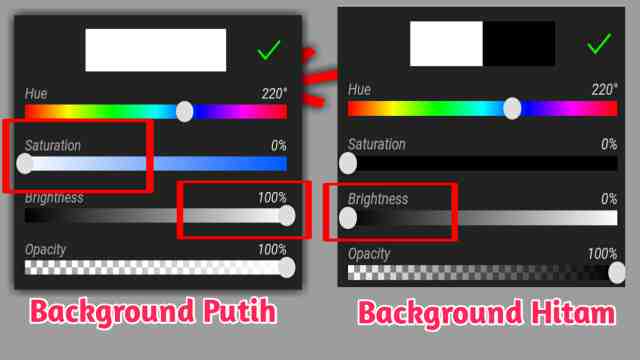 Jika Anda ingin membuat background hitam atau putih, maka atur juga Saturation dan Brightness nya, dalam hal ini :