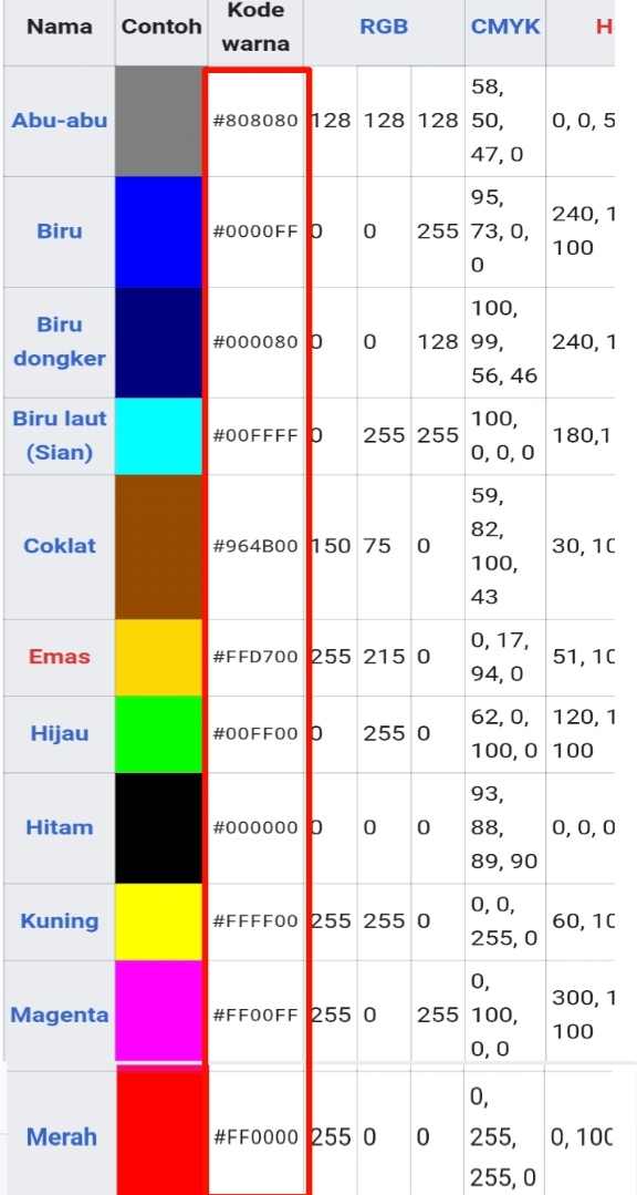 Berikut ini daftar kode warna yang bisa Anda gunakan: